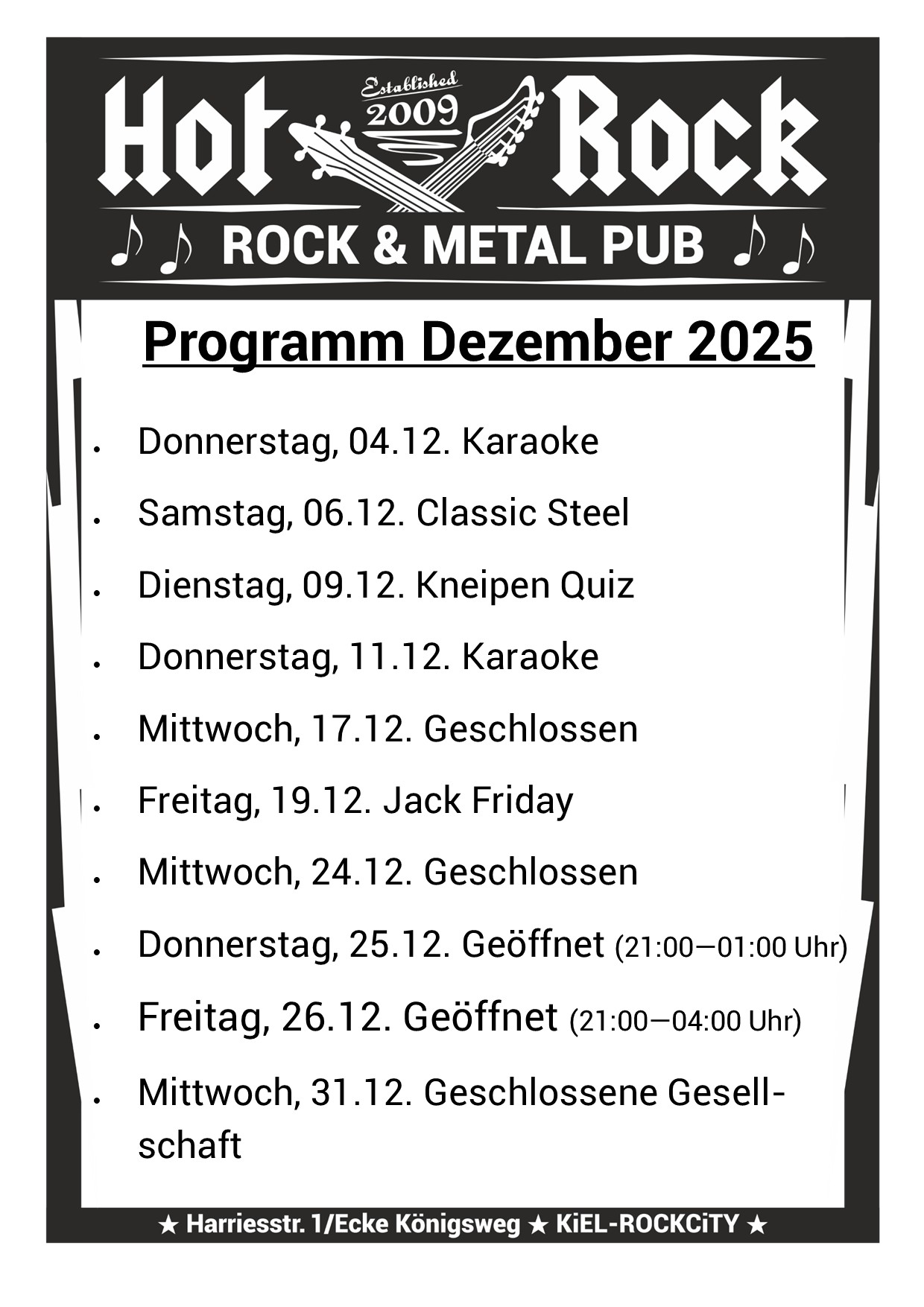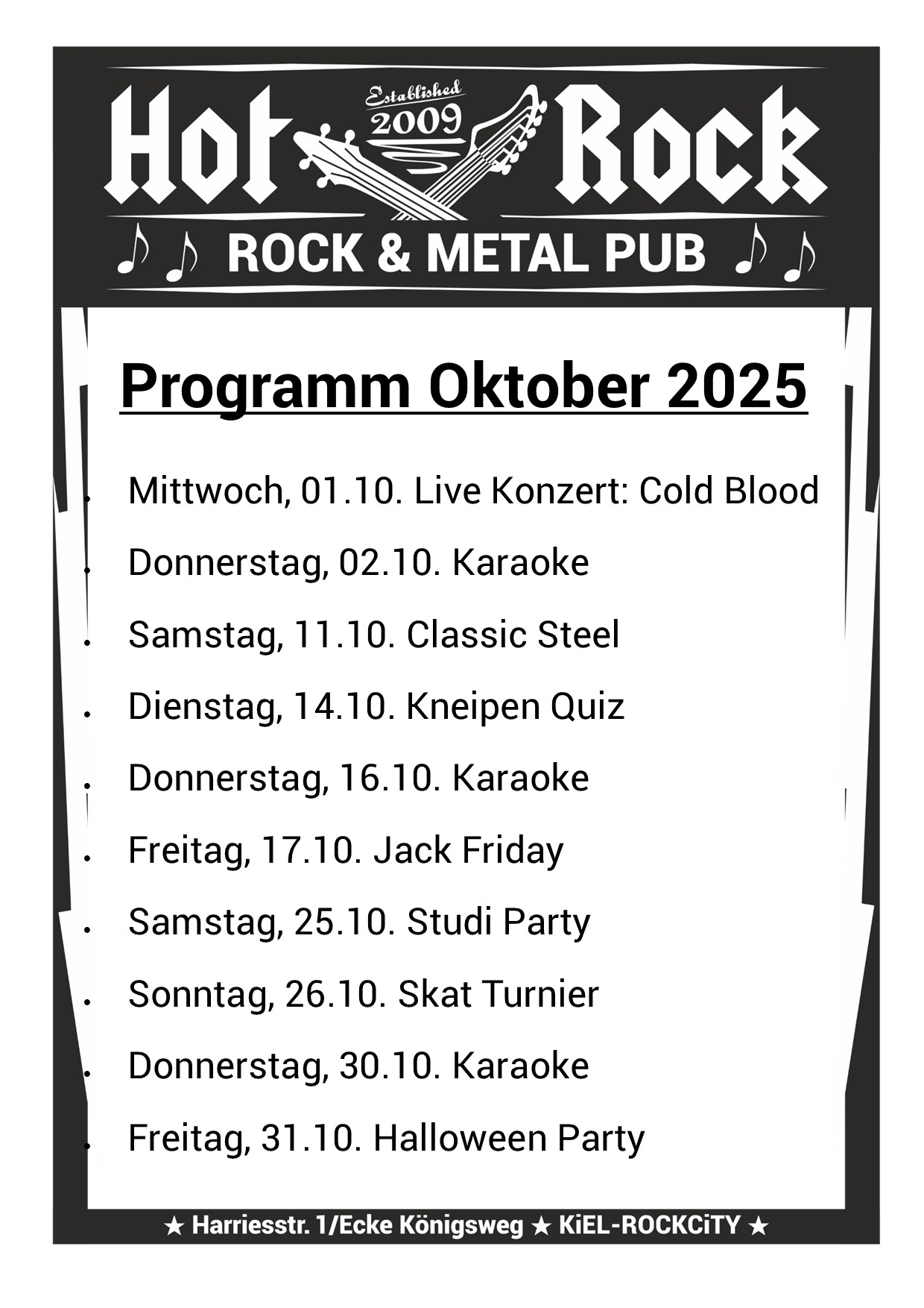 ...das Hot Rock Kiel – die Bar für alle, die Rockmusik im Blut haben! Seit 2009 sind wir der Ort in Kiel, an dem sich Rockfans, Metalheads und alle, die ehrliche Musik und gute Stimmung lieben, treffen.